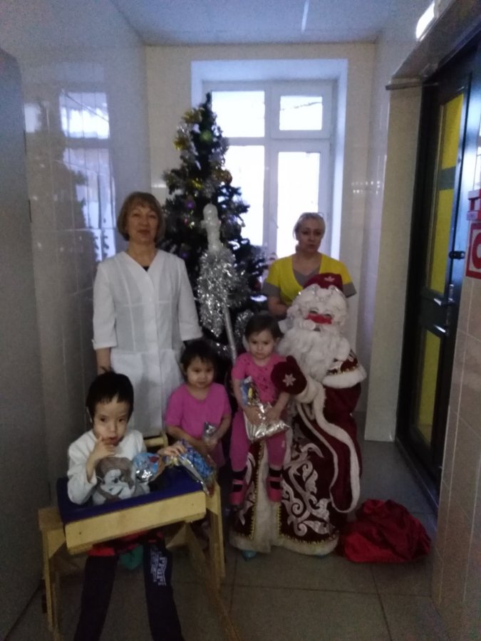 Дед Мороз и Снегурочка приехали в больницу, чтобы поздравить детей, находящихся на лечении в эти праздничные дни. И малыши, и подростки очень рады были подаркам. Сказочные герои послушали новогодние стишки, пожелали скорейшего выздоровления.