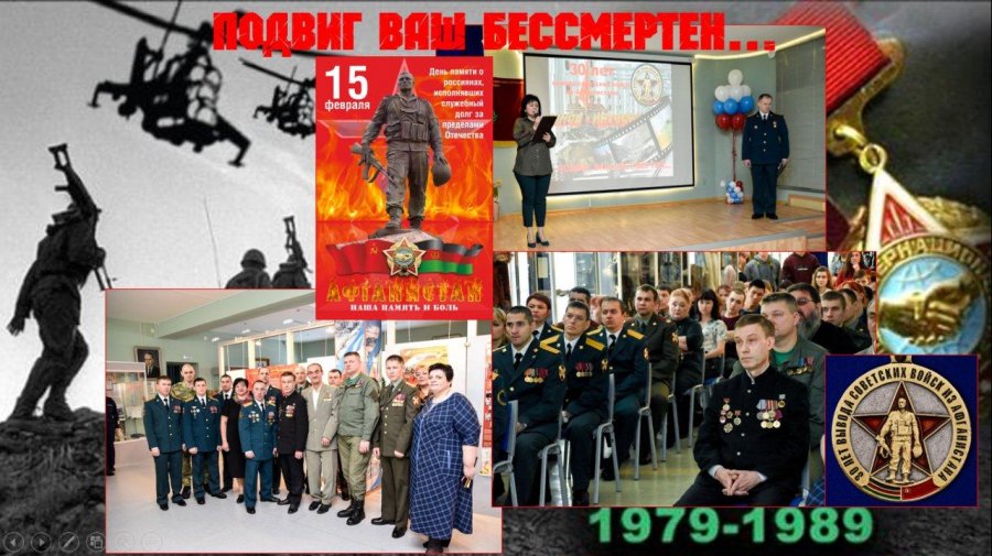 Памятная дата России, 15 февраля - это День памяти о россиянах, исполнявших служебный долг за пределами Отечества. В этот день в краеведческом музее имени Г. С. Глазырина прошло торжественное мероприятие «Подвиг Ваш бессмертен…». Главными участниками мероприятия по уже сложившейся традиции, стали воины-интернационалисты, проживающие в городе Билибино и много гостей, которым не безразлична тема «Память о воинах и войне». Почётными гостями нашей встречи стали: офицерский состав войсковых частей 3537 и 46179-Б, Глава муниципального образования городское поселение Билибино -Кожевникова Ольга Сергеевна, Начальник Управления социальной политики -Попова Светлана Викторовна, Председатель Совета Депутатов Билибинского муниципального района - Левашко Надежда Александровна, настоятель Храма Святого Серафима Саровского - отец Иоанн, студенты Чукотского северо-западного техникума города Билибино. Уже прошло 30-лет, как завершился вывод советских войск из Афганистана. В 10 часов 30 минут 15 февраля 1989 года последний воин Ограниченного контингента Советских войск сошёл с моста через реку Аму-Дарью, которая разделяет Афганистан и СССР. Им был Борис Громов, генерал-лейтенант, командующий 40-й армией. В этой официально необъявленной войне пали более 15000 советских офицеров и более 100000 афганцев. Десятки тысяч стали инвалидами, около трёх сот - люди, пропавшие без вести, о которых до наших дней никто ничего не знает. Об этой памятной дате рассказал непосредственный участник этих событий, почетный гость данного мероприятия, ветеран Афганистана, председатель Совета Чукотского окружного отделения Всероссийской общественной организации ветеранов «БОЕВОЕ БРАТСТВО» - Юрий Николаевич Крылов. В заключение своего выступления он пожелал собравшимся, чтоб они чтили память о своих соотечественниках, которые защищали границы своего Отечества. Рассказ о военных действиях на Кавказе, о героической 6-й роте Псковской дивизии ВДВ, всем восьмидесяти четырем погибшим и шести выжившим десантникам, были посвящены стихи и видеопрезентация. Чеченская война стала одним из самых масштабных вооружённых конфликтов новейшей истории. Всем матерям, потерявшим своих детей, которые исполняли свой воинский долг, Свиридова Жанна посвятила песню «Молитва». Минутой молчания все гости почтили память воинов - интернационалистов, в разное время принимавших участие в локальных войнах, «горячих точках», но не вернувшихся домой. В заключение встречи прозвучала песня «Русский парень», исполненная Зобовым Максимом и Ермоленко Александром. По окончанию мероприятия гости были приглашены во второй зал на выставку, посвящённую Дню памяти воинам-интернационалистам, где было выполнено групповое фото на память об этом важном событии. На мероприятии присутствовало около 100 человек, все гости и участники мероприятия отметили, что с каждым годом мероприятие становится весомее и масштабнее, а, главное, служит проводником связи между поколениями. Молодёжь узнаёт историю своего Отечества, которая воспитывает уважение к ветеранам воинам – интернационалистам.