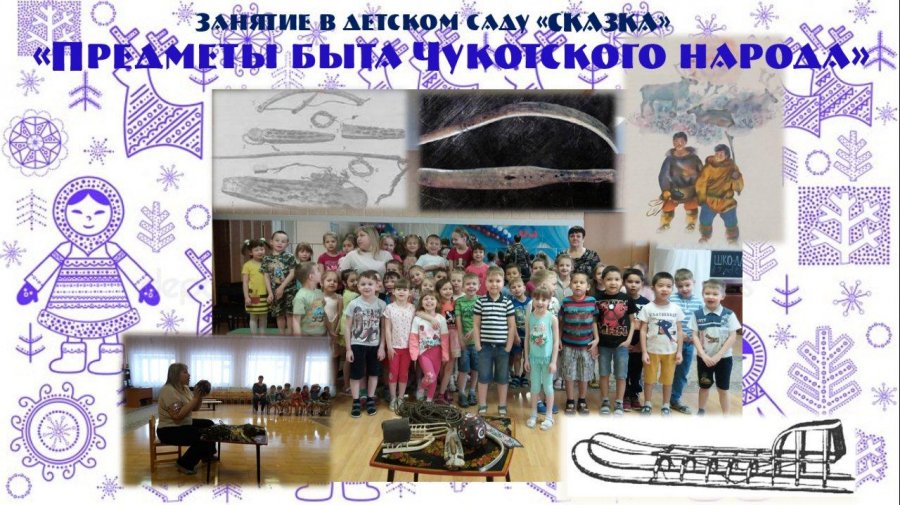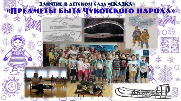20 февраля сотрудники музея посетили воспитанников детского сада «Сказка» с познавательным занятием «Предметы быта народов Чукотки». Всего вниманию детей представлено 6 предметов: чукотские сани (нарты), прибор для добывания огня (гыргыти), эскимосский мяч, чукотское украшение из бисера, чаат для ловли оленей и снеговыбивалка. Особый интерес вызвали названия предметов на чукотском языке, все старались их запомнить. Дети с интересом слушали рассказ об особенностях каждого предмета, о его применении. В целом знакомство с еще не известным вызвало у детей массу положительных эмоций В конце занятия, уже по доброй традиции фотография на память.