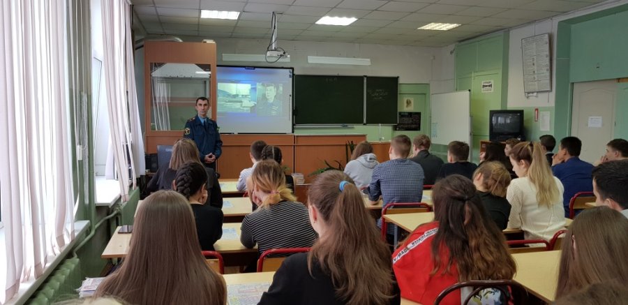 Гл. государственный инспектор БМР МЧС Степанов Н.Н. с помощью видеоролика познакомил с Департаментом ГО России и его основными задачами; провел «Инструктаж. Пожар в школе» с видеосопровождением и с обсуждением вопросов, ответы на которые должен знать каждый ребенок при наступлении ЧС;