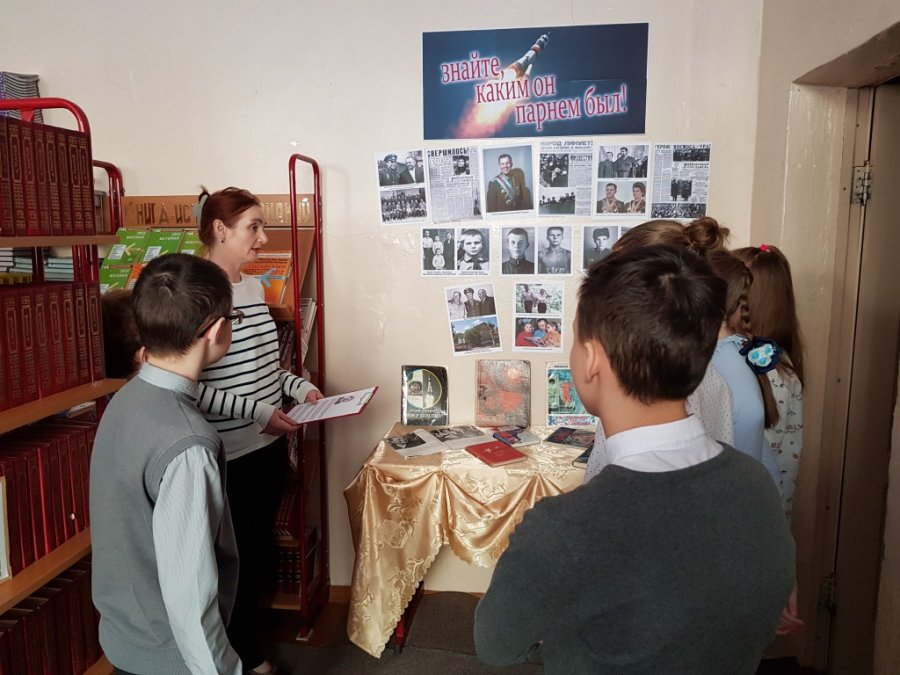 В марте 2019 года для учащихся 1-11 классов библиотекарем школы в целях повышения образования и воспитания чувства гордости и любви к своему Отечеству за достижения, которые были получены в области космонавтики, была подготовлена выставка книг, фото-документов и материалов о первом космонавте Вселенной – Юрии Алексеевиче Гагарине. Название выставки говорило сама за себя - «Знайте, каким он парнем был!»