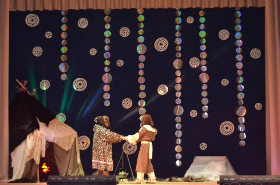 В минувшую субботу во Дворце культуры города состоялось одно из самых ожидаемых культурных событий весны – театрализованный концерт «Настоящая Вээм» национального ансамбля «Тиркытир». Столь ожидаемым событие стало не только потому, что концерт для коллектива являлся отчётным, а ещё и потому, что прошёл он в рамках Года театра в России, а также в рамках Международного года языков коренных народов мира. К большой радости и самих участников концерта, и других патриотов родной Чукотки в виде зрителей, прошёл он на высоком уровне, подарив всем не только волшебство чукотской сказки, а и глубокий смысл. Нельзя обижать, особенно, пожилых. Иначе их могут забрать предки в свой верхний мир. И тогда без волшебства не обойтись. Так девушка Вээм из-за своей лени и равнодушия, потеряла любимую бабушку. И, натолкнувшись на ворох бытовых трудностей (нелегка жизнь в тундре), отправилась на её поиски. На пути исправления её ждали: танцующие евражки, морж, ожившие скала, река и ягодная поляна. Смягчилось сердце Вээм, ведь в этом приключении она увидела и себя со стороны, твёрдо решив исправиться. Так были задобрены духи предков, которые вернули Вээм её любимую бабушку. Интересный сюжет, интересно вдвойне, что в театрализованном концерте очень часто звучал чукотский язык, который придал сказке особую таинственность и колорит. Судя по отзывам - «Настоящая Вээм» останется в сердцах зрителей надолго. Приятно осознавать, что эта чудесная северная история не заканчивается, а будет подарена и жителям сёл Билибинского района. Ведь в планах у национального ансамбля – отправиться на гастроли. «Тиркытир» благодарит за участие в театрализованном концерте детский национальный ансамбль «Северята», а также ансамбль «Нутэнгрэп» из села Кепервеем.