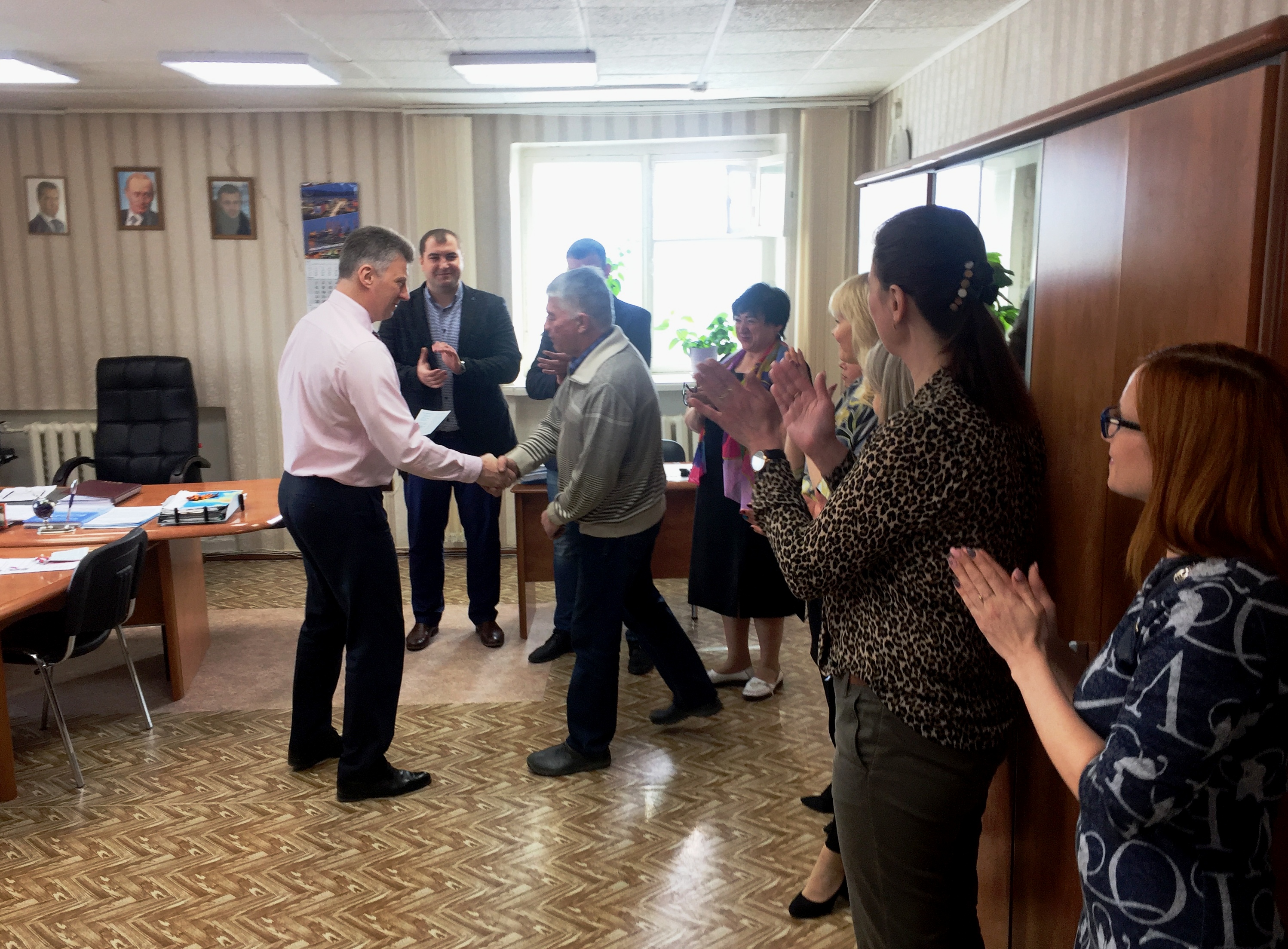 26 апреля Евгений Сафонов поздравил работников Администрации Билибинского района с присвоением почетного звания «Ветеран труда Чукотского автономного округа», вручив им удостоверения и знаки отличия.