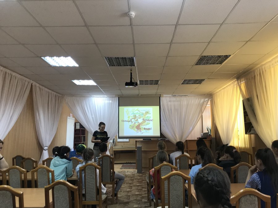 В библиотеке города Билибно День здоровья «Солнце, воздух и вода» состоялся для ребят Летней оздоровительной площадки, которые с азартом включились в соревновательный формат этого мероприятия. Для всех собравшихся библиотекарь продемонстрировала ролик из киножурнала «Ералаш» по теме здорового питания, который закрепил знания ребят о правилах здорового образа жизни.