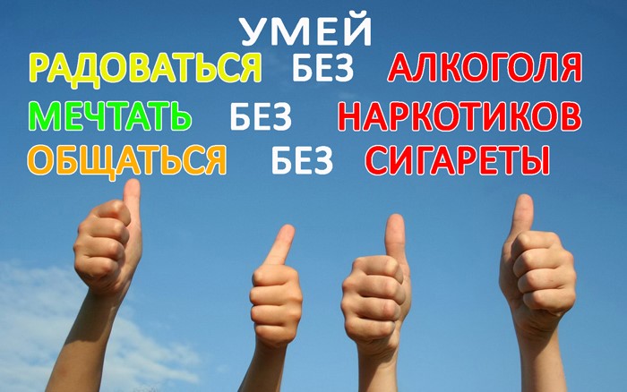 Курение и алкоголь наносят непоправимый вред здоровью человека. Это медленное отравление организма ядохимикатами. Не существует понятия «легких» алкогольных напитков и курительных смесей. Все они, подобно наркотикам, относятся к психоактивным веществам и длительное, и неумеренное их употребление, особенно в подростковом возрасте, приводит к формированию физической и психической зависимости, ухудшению здоровья и ранней смерти.