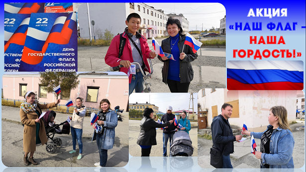 В этот важный день для всей страны, сотрудники Билибинского краеведческого музея имени Г.С.Глазырина провели на улицах нашего города патриотическую акцию «Наш флаг - наша гордость!». Для жителей и гостей города музейные работники раздавали информационные флаера об истории российского триколора, российские флажки.