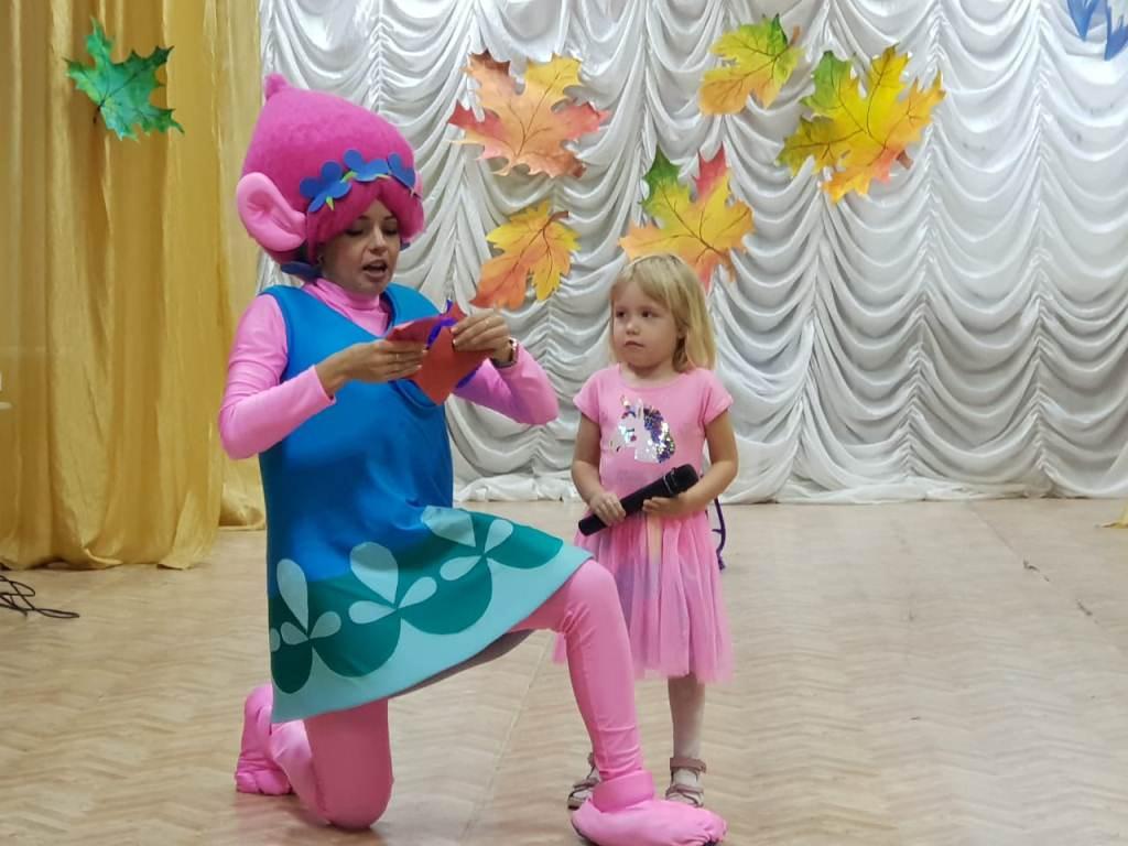 15 сентября в 13:00 в воскресный день Центр дополнительного образования встречал в своих стенах детей в возрасте 4-7лет, которые собрались на шоу «Осеннее настроение». Дошкольников и их родителей встречал дружелюбный персонаж Розочка из любимого мультфильма «Тролли».