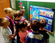 В детском саду МБОУ «Школа-интернат с. Кепервеем» прошла неделя космоса. Педагоги продолжили знакомить дошколят с солнечной системой, в которой находится наша планета Земля, с условиями для существования жизни на планете, узнали о Луне спутнике Земли. Рассматривали иллюстрации с изображением загадочного мира звёзд и планет, читали стихи и отгадывали загадки. Свои впечатления дети отразили в рисунках, лепке, аппликации, многие наши воспитанники сразу решили стать космонавтами. Космос – это интересно, необычно, загадочно!