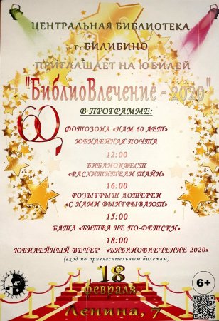 Говорят, что у каждого в жизни есть свой «Звездный час». 18 февраля 2020 года этот час пробьет для Центральной библиотеки. Жителей и гостей города Билибино ожидает большой знаменательный праздник – 60-летний юбилей библиотеки!