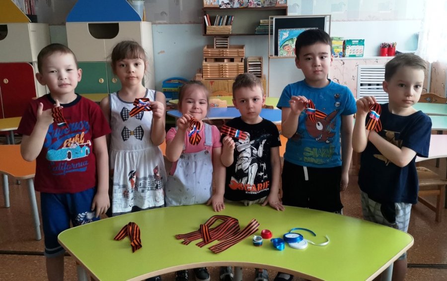 Воспитанники старшей дежурной группы детского сада «Сказка», в преддверии праздника Дня Победы, приняли участие в акции «Георгиевская ленточка».