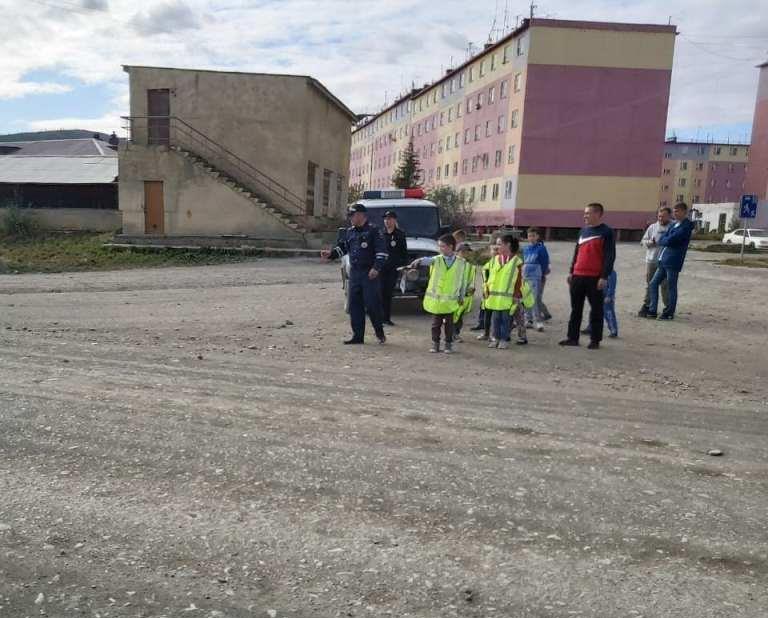 27 июля 2020 г. в летнем лагере при СОШ города Билибино проходила встреча и беседа с сотрудниками ГИБДД. Сотрудники полиции рассказали детям о правилах дорожного движения. После беседы инспекторы с детьми выдвинулись на дорогу, которая проходит у городской школы. Воспитанникам лагеря продемонстрировали практическую работу, инспекторами были остановлены несколько автомобилей и произведена проверка документов. Дети с удовольствием слушали беседу и были под впечатлением от практической составляющей работы инспекторов ГИБДД. Мероприятие запомнилось всем!