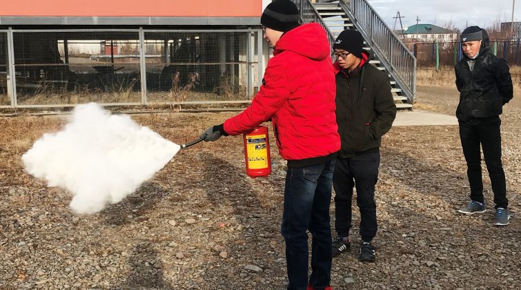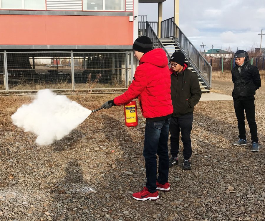 Учащиеся научились пользоваться огнетушителем и потушили воображаемый огонь.