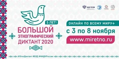 С 3 ноября по 8 ноября 2020 года на шести площадках Билибинского МР пройдёт «Большой этнографический диктант»: