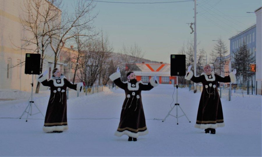 Запланированная акция прошла, несмотря на крепкий мороз. Это не испугало ни артистов, ни зрителей, которыми стали случайные прохожие. Учитывая эпидемиологическую ситуацию, мероприятие не анонсировалось во избежание массовости и было не столь продолжительным. Но это не помешало подарить праздничное настроение тем, кто оказался рядом и тем, кто мог наблюдать небольшой концерт из своих окон. В репертуар праздничной акции вошли патриотические песни о Родине, о родном городе, дружбе и любви. А зажигательный танец в исполнении национального ансамбля «Тиркытир» был ознаменованием того, что Чукотка встречает День единства первой и передаёт эстафету нашей большой стране. Завершилась праздничная акция патриотической песней «Мы вместе» в исполнении всех участников программы – солистов вокальной студии «Гармония». Финальная песня, как и слова ведущей, призвали всех помнить о том, что мы вместе, наша сила в единстве, а единство во имя нашей Родины.