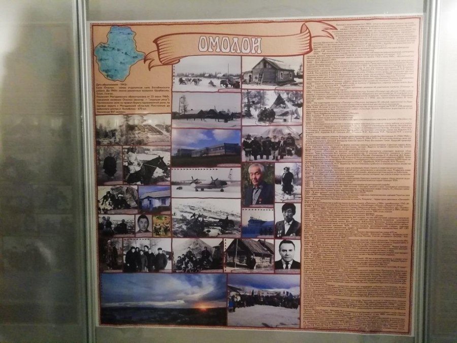 В Билибинском краеведческом музее имени Г.С. Глазырина продолжает действовать выставочный проект «История в лицах», посвященная 90-летию Билибинского района. Третья страница из цикла посвящена – селу Омолон.