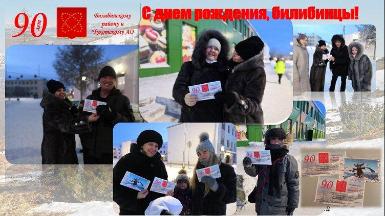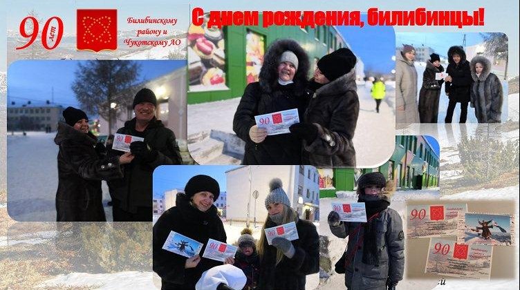 10 декабря сотрудники Билибинского краеведческого музея имени Г.С. Глазырина провели на улицах города акцию «С юбилеем, билибинцы!», посвященной 90-летию образования Чукотского автономного округа и Билибинского района.  Жителям и гостям города раздавались праздничные флаера с поздравлениями и словами признания и любви к своей малой родине.
