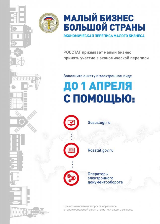 Росстат напоминает, что экономическая перепись малого бизнеса проводится 1 раз в 5 лет и в соответствии с законодательством Российской Федерации участие в ней является обязательным.