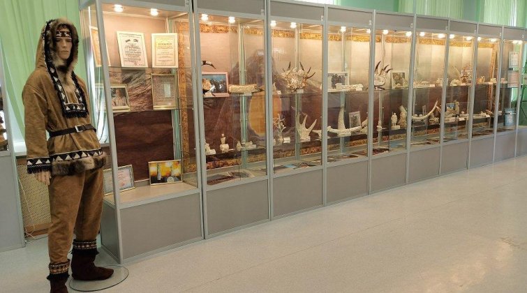Вниманию посетителей в зале истории представлены из золотого фонда музея работы билибинских косторезов, Уэленской косторезной мастерской, которых объединила тема севера. Искусство художественной обработки кости является «визитной карточкой» народов Чукотки.