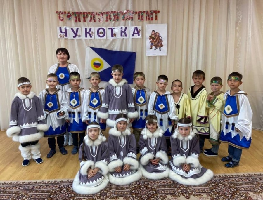 10 августа 2021 года в детском саду «Сказка» прошло тематическое мероприятие, посвящённое Международному дню коренных народов мира. Праздник открыла хозяйка тундры Хейро, приветствовала она ребят на чукотском и эвенском языках. Рассказала дошкольникам о коренных народах, населяющих Чукотку, об их быте и промысле, известных писателях и косторезах.