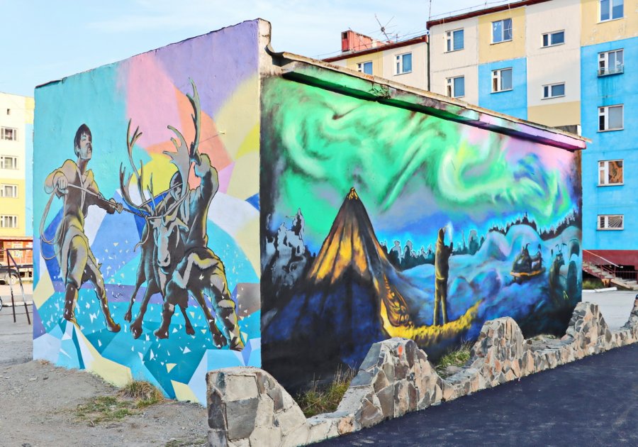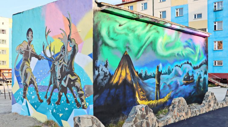 Трансформаторную подстанцию, расположенную в м-оне Арктика, украсили рисунками с чукотскими мотивами. В роли исполнителей выступил Максим Мартюшев – автор проекта и Дмитрий Шилипатий. Стоимость работ с учетом закупки и доставки покрасочных материалов составила около 230 тыс. рублей.