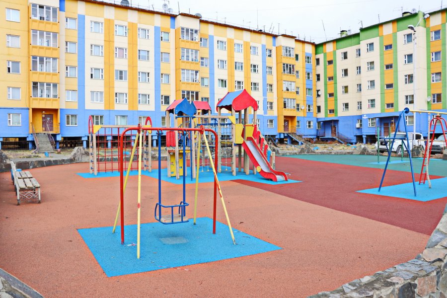 В текущем году работы по устройству травмобезопасного покрытия провели на 3-х детских площадках: микрорайон Арктика 1/5, микрорайон Восточный 1/5, а также по улице Заводская 4. Общая площадь покрытия на указанных площадках составляет 1387 кв. метров