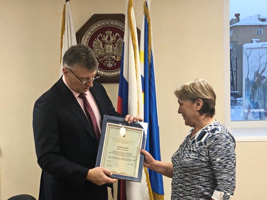 В ходе встречи Глава Билибинского района – Евгений Сафонов вручил руководителю муниципального сельхозпредприятия «Островное» - Ольге Яковлевой ведомственную награду Минсельхоза России за многолетний добросовестный труд в системе агропромышленного комплекса.