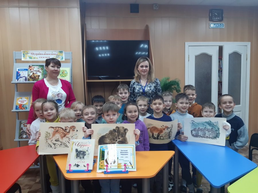 В ноябре 2021 года исполнилось 120 лет со дня рождения детского писателя Евгения Чарушина. В течение недели сотрудники Детской библиотеки проводили для воспитанников детских садов «Сказка» и «Аленушка» Дни информации «Добрый мир Чарушина - мир детей, мир природы», посвященные юбилейной дате.