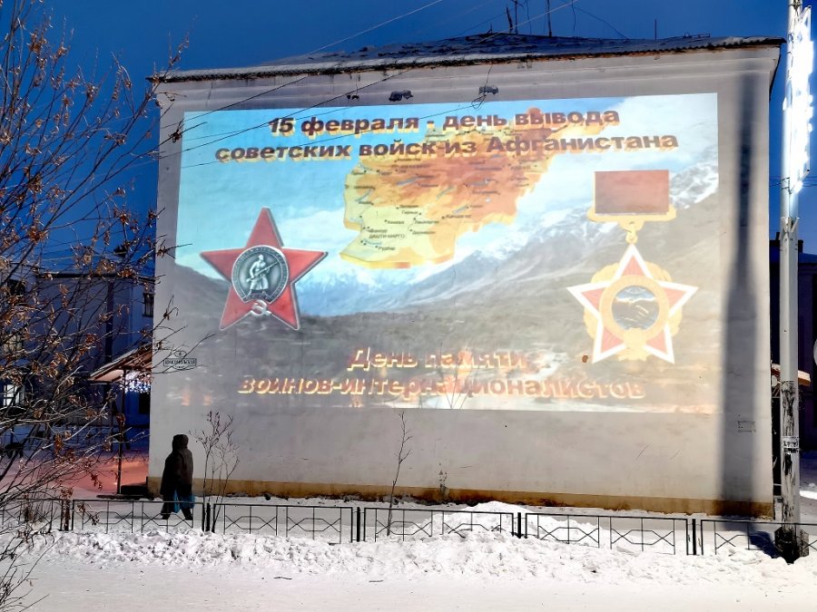 15 февраля «День памяти о россиянах, исполнявших служебный долг за пределами Отечества» прошла уличная трансляция интерактивной выставки «День вывода советских войск из Афганистана». В этот день мы вспоминаем тех, кто служил в Афганистане, Таджикистане, Абхазии, Приднестровье, Чечне, …других горячих точках. Как дань уважения и почтения к воинам-интернационалистам, к тем, кто погиб, к тем, кто вернулся, но не дожил до сегодняшнего дня посвящена трансляция. Хочется, чтобы в памяти людской, в сердцах каждого жителя нашего города они жили долго. Святая обязанность – помнить героев России, которые до конца исполнили свой воинский долг.