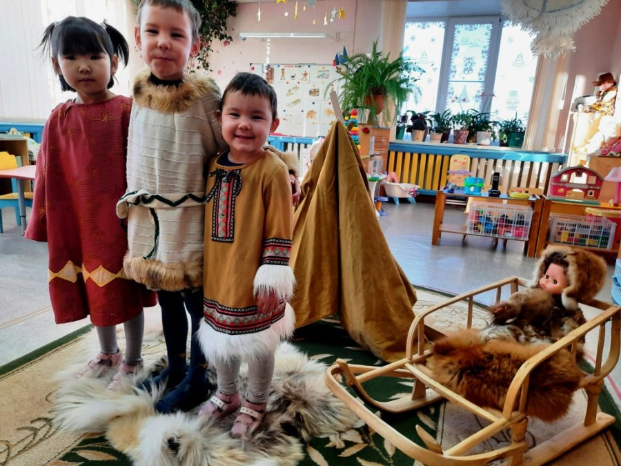 21 февраля 2022 года, в разновозрастной группе детского сада МБОУ «Школа-интернат с.Кепервеем» прошёл тематический день, посвященный Международному Дню родного языка.Главная цель: развивать у детей любознательность и интерес к языкам; воспитывать уважение и любовь к родному языку, а также к другим языкам; способствовать развитию устной речи детей. Мероприятие проходило с использованием национальных костюмов и экспонатов из школьного музея. Дети с удовольствием окунулись в мир родного чукотского языка, обычаев, песен и традиций.