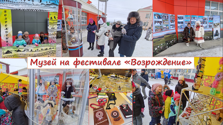 16 и 17 апреля в г.Билибино прошёл фольклорный фестиваль «Возрождение». Главная миссия праздника – возрождение традиций коренных народов, проживающих на территории Билибинского района. На праздник приехали делегации из всех сёл Билибинского района (Островное, Омолон, Анюск, Илирней, Кепервеем). Сотрудники музея приняли активное участие в этом событии города и района. Для жителей и гостей фестиваля была подготовлена выставка-продажа изделий декоративно-прикладного творчества, косторезного искусства. На ярмарке представлены поделки наших билибинских мастеров, которые пользовались спросом у гостей праздника. Также была подготовлена фотовыставка из истории фестиваля «Возрождение», проходившего в разные годы и фотозона для памятной фотографии. Все гости фестиваля окунулись в атмосферу национальной экзотики северных народов. Гостеприимные хозяйки яранг знакомили гостей с национальной кухней малочисленных народов Чукотки. В программе фестиваля: праздничный концерт, танцы, песни народов Севера, спортивные состязания, выставки декоративно-прикладного творчества, игры для детей.