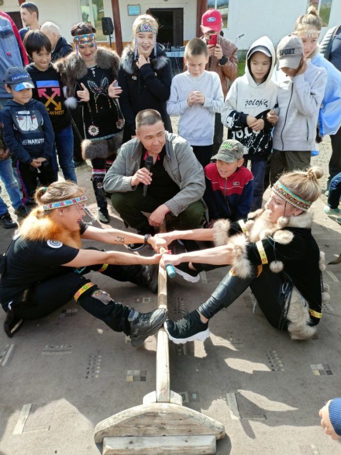 На площади перед домом культуры прошел праздник Дня малочисленных коренных народов мира. Дети принимали активное участие: открыли концерт национальным танцем «Хеди», активно участвовали в национальных играх «Борьба на палках», «Бега», «Перетягивание каната».