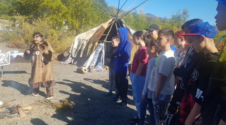 В полдень на стадионе возле недавно установленной яранги всех ребят ждали гости: представительницы коренных малочисленных народов Чукотки – хранители обрядов и традиций. Вместе со спортсменами они провели обряд благодарения и станцевали «танец радости», а затем угощали ребят традиционной едой северных кочевых народов.