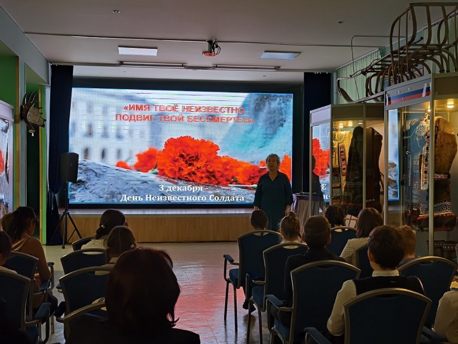 2 декабря в Билибинском краеведческом музее для школьников 4 класса прошло мероприятие «Имя твоё неизвестно, подвиг твой бессмертен», посвящённое Дню Неизвестного солдата.