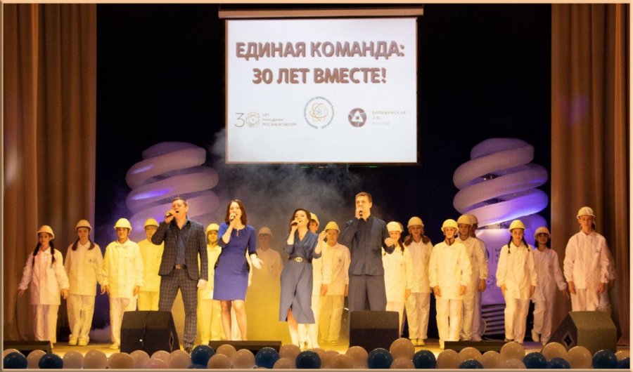 В перерывах между награждениями жителей радовали творческие номера от вокальных и хореографических коллективов билибинского района. А в финале прозвучал гимн Концерна Росэнергоатом в исполнении вокального ансамбля Дворца Культуры «Гармония».