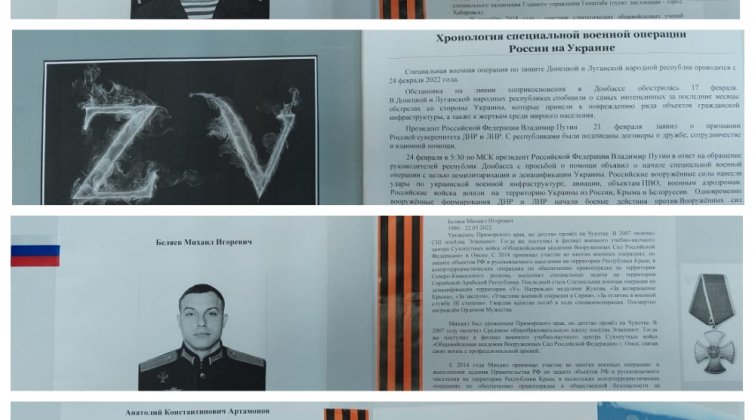 27 декабря в ДК с. Островное прошел час патриотизма «История Отечества: события, люди». Ребятам был представлен лэпбук «Война пришлась на юность нашу». Лэпбук изготовлен в целях сохранения памяти о героических поступках наших земляков, жителях Чукотки, проявивших мужество и героизм при выполнении воинского долга во время проведения специальной военной операции на Украине. В нем представлена хронология специальной военной операции России на Украине, фото и биографии Героев.