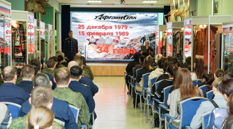 15 февраля, в 34-ю годовщину вывода советских войск из Афганистана, в Билибинском краеведческом музее имени Г. С. Глазырина прошло традиционное памятное мероприятие, посвященное россиянам, исполнявших свой служебный долг за пределами Отечества. На мероприятие были приглашены гости: воины-интернационалисты, военнослужащие войсковых частей города № 3537 и № 46179Б, исполняющий обязанности Главы администрации муниципального образования Билибннский муниципальный район - Медведев А.В., Глава муниципального образования городское поселение Билибино Кожевникова О.С., председатель Совета депутатов Левашко Н.А., юнармейцы Чукотского северо-западного техникума города Билибино и учащиеся 10 класса. Ведущие мероприятия рассказали о военных событиях и подвигах воинов-интернационалистов и российских военных, которые исполняли свой служебный долг в Афганистане, Чечне, а также на Донбассе, в Запорожской и Херсонской областях. Все гости, присутствующие на мероприятии, почтили минутой молчания память воинов-интернационалистов и героев Z, не вернувшихся со специальной военной операции. В заключение встречи было зачитано поздравление-письмо от Героя Советского союза, генерала-полковника Бориса Громова. Далее гости были приглашены во второй зал на выставку, посвящённую Дню памяти воинам-интернационалистам и армии России, где, по традиции, была выполнена фотография на память с участниками тех событий.