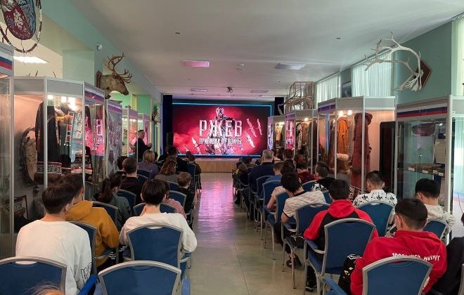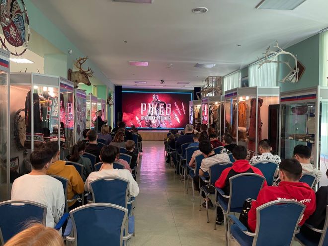 4 марта в Билибинском краеведческом музее им. Г. С. Глазырина прошел кинолекторий с показом документального фильма «Ржев. Прививка от войны…», посвященный восьмидесятилетию освобождения города воинской славы - Ржева. Мероприятие прошло совместно с Билибинским отделением Российского географического общества. Посетителями кинолектория стали: студенты Северо – западного техникума, представители воинских частей, гости и жители города.