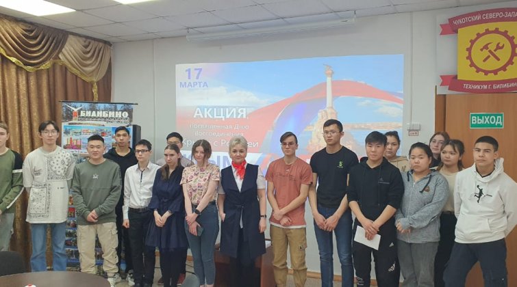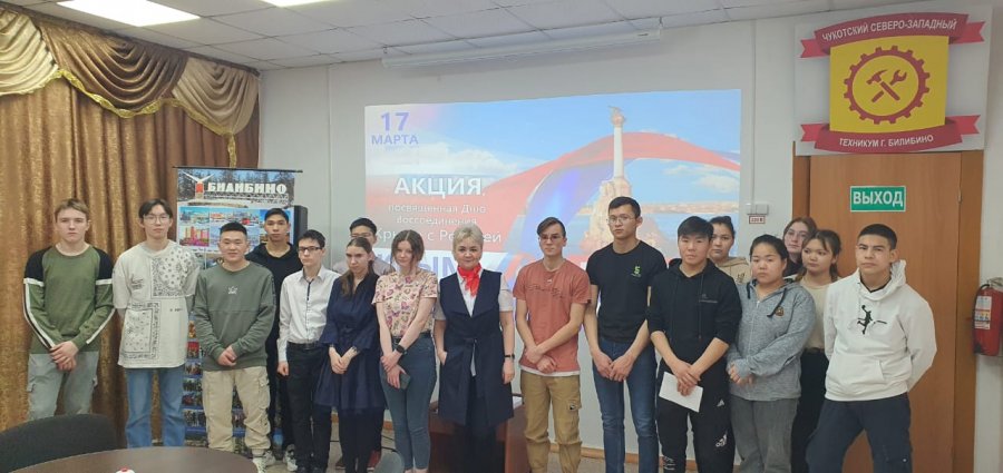 2023 год ознаменован девятой годовщиной воссоединения Крыма с Россией - события, имеющего огромное значение для исторической справедливости. Памятная дата 18 марта мгновенно стала праздником для всех россиян и в особенности жителей полуострова. В преддверии знаменательной даты, сотрудники библиотеки посетили Чукотский северо-западный техникум, чтобы поведать студентам о событиях девяти лет назад в республике и представить художественный фильм «Крым». «С любимыми не расставайтесь» - эта известная фраза стала слоганом российской киноленты, выпущенной в 2017 году режиссером Алексеем Пимановым. Библиотекарь поделилась с присутствующими историей создания полнометражного драматического фильма, инициатором которого стал сам министр обороны России Сергей Шойгу, познакомила с интересными фактами съемок, шедших почти два года и три месяца, а также продемонстрировала трейлер «Крыма» - истории любви, веры и чести, силы духа и настоящей дружбы на фоне реальных событий крымской весны 2014 года. Библиотекарь предложила студентам обязательно посмотреть фильм «Крым» и процитировала слова Алексея Пиманова: «Этот фильм — наши ощущения, наши сомнения, боль и гордость. В нем мы рассказали о некоторых малоизвестных событиях Крымской весны. Мы старались быть честными не только перед зрителями, но и перед самими собой».
