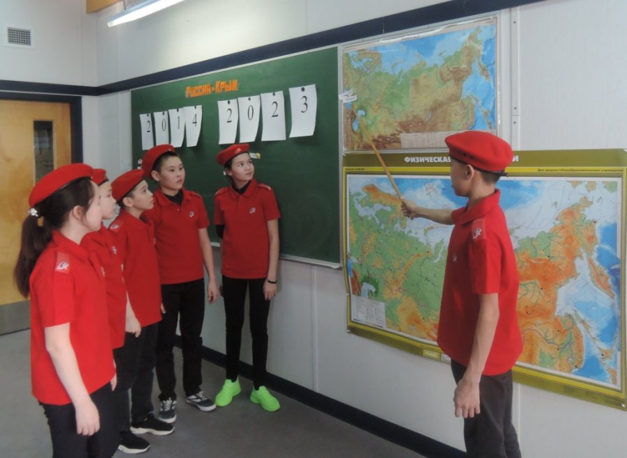 16 марта в МБОУ «ЦО с. Анюйск» руководителем отряда ЮНАРМИИ было проведено внеклассное мероприятие «Россия и Крым - 9 лет вместе!». На занятии были рассмотрены вопросы исторической необходимости воссоединения Крыма с Россией, географическое положение Крыма, понимание современной политической ситуации в Крыму. Юнармейцы посмотрели презентацию«Вхождение Крыма в состав России». Познакомились с процедурой референдума международного договора о принятии Крыма и Севастополя в состав России. Учащиеся подготовили легенду о Медведь-горе, стихи о Крымском полуострове.