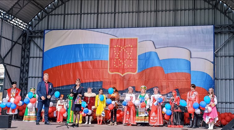 Ко Дню России коллектив Дворца культуры, Центральной библиотеки и Краеведческого музея готовился заранее. Продумывали дизайн пригласительных открыток, фотозоны и сцены. Было решено использовать трехцветный вариант российского флага во всех украшениях. Во Дворце культуры недавно начала свои репетиции группа «Норд-Джем», ко Дню России ребята подготовили пять номеров и впервые вышли на городскую сцену со своим творчеством. Гитаристы, барабанщик, клавишник и солисты подарили билибинцам атмосферу рок - концерта. Но это было после торжественной части и концертных номеров. Сама программа праздника предполагала увлечь зрителей не только талантливыми номерами танцев, песен и спортивных выступлений от артистов и воспитанников Дворца культуры, Детско-юношеской спортивной школы, д/с «Аленушка», Билибинской школы искусств и Чукотского северо-западного техникума, но и живой фотозоной, в которой собрались 16 волонтеров культуры в разных национальных костюмах. А также участием во Всероссийских акциях «Письмо солдату СВО» и «Триколор». Ведущие концерта Жанна Варламова и Екатерина Теряева в начале концерта пригласили на сцену главу администрации Билибинского муниципального района Евгения Сафонова для поздравления жителей и гостей города Билибино с праздником, и вручения паспорта юным гражданам России. Продолжила церемонию награждения исполняющая обязанности начальника Управления социальной политики - начальник отдела образования Яна Луценко, которая вручила Благодарности Департамента культуры, спорта и туризма ЧАО волонтерам г.Билибино. Впервые на празднике Дня России участники секции рукопашного боя (Чукотский С-З техникум) вынесли огромный Российский флаг и пронесли его через всю площадь к сцене под песню «Россия-Родина моя» в исполнении Даниила Крылова, зарядив зрителей патриотизмом. В течение мероприятия волонтеры культуры раздавали билибинцам ленточки, шары, флажки и флайеры с российской символикой. Весь концерт прошел на патриотической ноте и, как на одном дыхании. Еще долго зрители подходили к организаторам мероприятия и благодарили за приятные эмоции и заряд хорошего настроения.