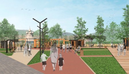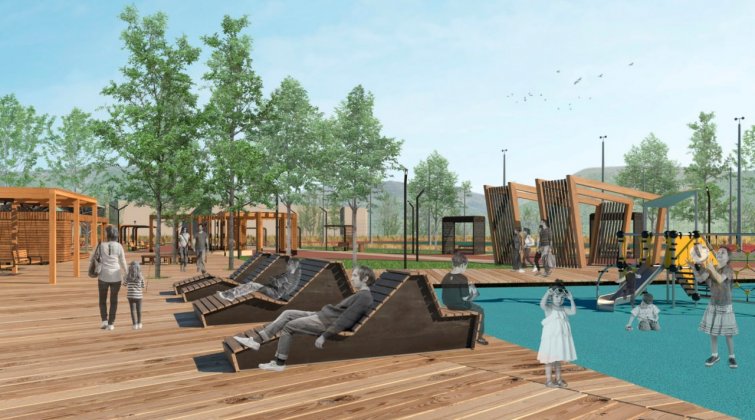 На выбранном участке в случае победы начнется строительство масштабной общественной зоны для всех возрастных групп населения. Наполнение территории будет с различными архитектурными формами и зонами: