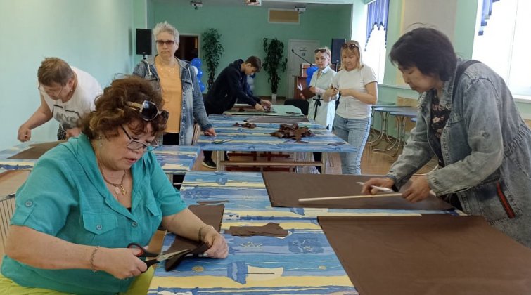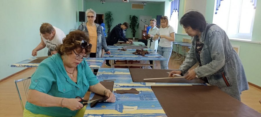 Мастерицы города и неравнодушные граждане режут ткань на ленточки, складывают в коробки, чтобы затем приступить к плетению. Есть те, кто не имеет возможности приходить в ДК и работать со всеми, но очень хотят помогать - им выдают ткань на дом.