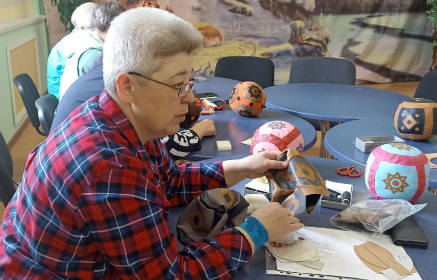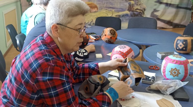 Мастер-класс во Дворце культуры перерос в интересный марафон, кто создаст лучший эскимосский мяч, среди рукодельниц Билибино. А все начиналось с объявления Департамента культуры, спорта и туризма ЧАО, который предложил всем мастерам Чукотки сшить традиционные эскимосские мячи для арт-объекта, который украсит павильон Чукотки на выставке «Улицы Дальнего Востока» в дни работы VIII Восточного экономического форума в сентябре этого года. Предполагается в огромную, пластиковую, прозрачную букву «Z» поместить 435 мячей диаметром 20 сантиметров. Руководитель клуба рукоделия «Титикэй» (с чукотского «Иголочка») Вероника Исламова (на фото) пригласила всех желающих поучаствовать в такой интересной акции и посетить мастер-класс во Дворце культуры, где она показала, как правильно раскраивать, шить, украшать изделия, подарила каждому участнику выкройку и немного разных материалов (кожу, кожзам, синтепон, бумагу) для творчества. В один из выходных дней восемь мастериц собрались в малом зале ДК и начали свое творчество с рассказа, что такое эскимосский мяч, какие орнаменты можно на него наносить и что они означают. К тому времени Вероника уже пошила несколько мячей, поэтому женщины, увидев результат, решили посоревноваться из интереса. На сегодняшний день сшито 12 мячей, в работе еще шесть. К условленному сроку (20 июля) хозяйка клуба «Титикэй» Вероника Исламова обещает все завершить и собрать посылку в Анадырь.