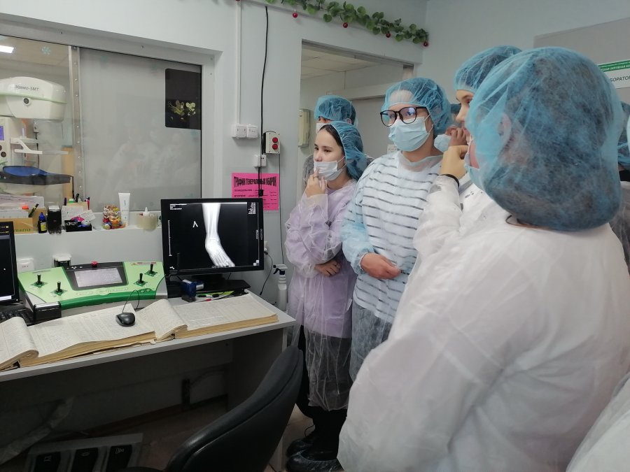 В рамках профориентационной работы, обучающиеся выпускных 9-х классов МАОУ «СОШ г. Билибино ЧАО» посетили с экскурсией в ГБУЗ «Чукотская окружная больница» - филиал «Билибинская районная больница». Во время экскурсии ребятам рассказали о специфике работы врача-рентгенолога, врача-отоларинголога, дежурной медсестры, медсестры станции переливания крови. А также ребятам удалось побывать во всех медицинских кабинетах, где работают специалисты. И попробовать самим хоть на короткое время, стать медицинским работником. Экскурсия получилась интересной и плодотворной для выбора будущей профессии.