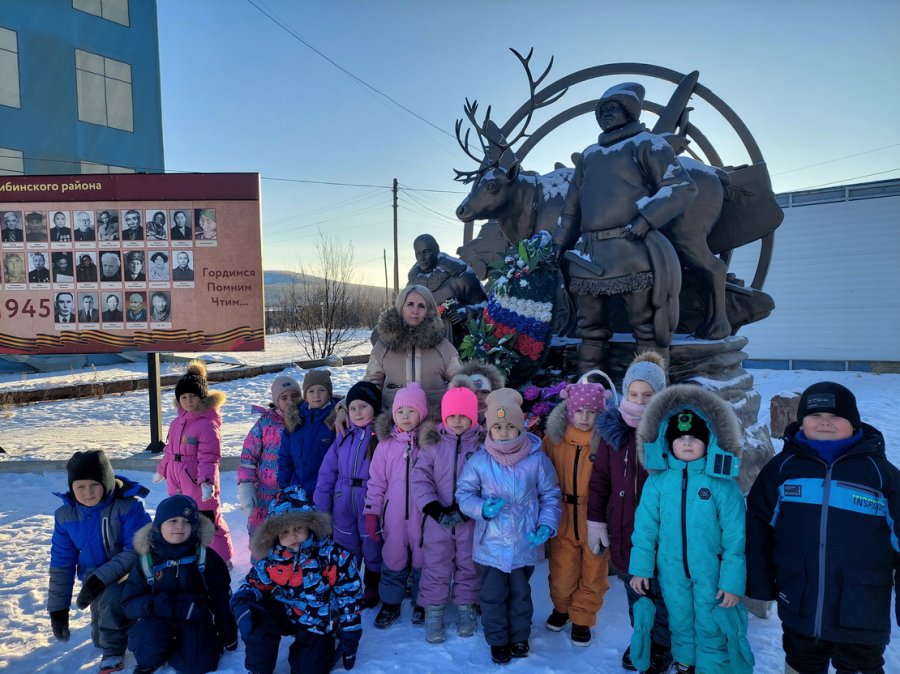 27 октября воспитанники подготовительной группы Детского сада «Алёнушка» отдали дань памяти героям, трудившимся в тылу во время войны,посетив памятник труженикам тыла. Воспитатель рассказала ребятам о нелёгком труде жителей Чукотки, об их вкладе в Победу над фашистами. «Всё для фронта, всё для Победы!», - все силы отдавали труженики тыла, выполняя этот призыв в годы Великой отечественной войны. Дети рассматривали изображённых скульптором оленевода - охотника, золотодобытчика, задавали вопросы, о том, как трудились эти люди и что они делали для Победы, почему возле памятника стоят цветы. Экскурсии стимулируют познавательную деятельность детей, а посещение памятных и значимых мест, способствует интересу к истории Родины, воспитанию уважительного отношения к участникам войны и труженикам тыла, любви к родине и гордости за свой народ.