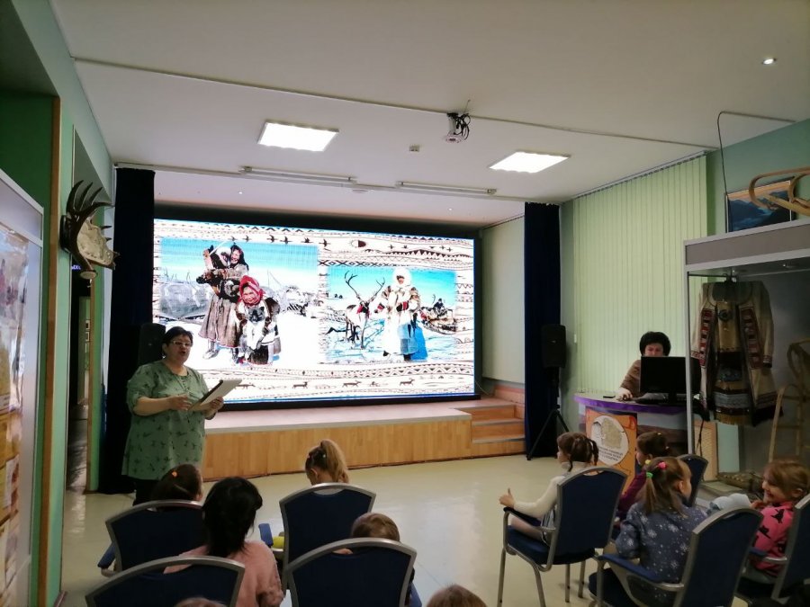 15 ноября в Билибинском краеведческом музее имени Г. С. Глазырина прошло мероприятие «Культура и быт коренных народов Севера». Гостями мероприятия стали воспитанники подготовительных групп детского сада «Сказка». Научные сотрудники подготовили лекцию и презентацию, рассказывающие о культуре и быте жителей нашего района. Ребята посетили экскурсию в зале «Этнографии», где узнали о том, какую одежду носят эвены и чукчи, как она называется на эвенском и чукотском языках, как и чем украшена, из чего изготовлена. Словарь дошколят пополнился новыми названиями, они учились проговаривать слова. Дети также посмотрели мультипликационный фильм «Ворон – обманщик» и ответили на вопросы по теме мероприятия. Много нового узнали гости музея на этой встрече. Также посмотрели выставку работ муниципального конкурса детского творчества «В мире детства».