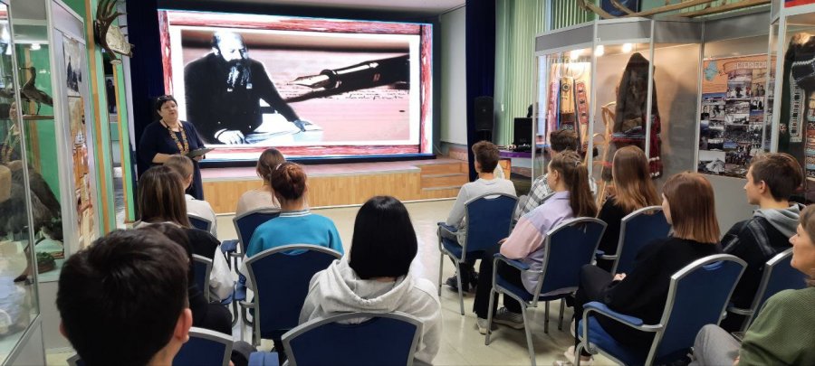«Культуру и жизнь Отечества строят не «время» и «эпоха», а живые и смертные люди с именами и фамилиями, строят со своими понятиями и вкусами, своими идеалами или интересами. В поединке корысти и совести решают не обстоятельства, решает человек, его личный выбор».Эти слова, как никакие другие, подходят к определению судьбы замечательного человека, знатного геолога, основателя и бессменного директора Билибинского краеведческого музея Григория Сергеевича Глазырина. В этом году Г. С. Глазырину исполнилось бы 114 лет. 24 ноября в Билибинском районном краеведческом музее состоялось мероприятие «Г. С. Глазырин – наш «дед», наша легенда» для старшеклассников общеобразовательной школы. Научные сотрудники подготовили лекцию и презентацию, рассказывающие о судьбе Григория Сергеевича. Также перед ребятами выступила директор музея Марина Иваницкая, которая поделилась воспоминаниями о своей работе с легендарным «дедом». Ребята познакомились с экспозицией и фотодокументальной выставкой, увидели личные вещи, предметы, которыми пользовался дед. Школьники задавали вопросы и состоялась беседа. Они узнали много нового о том, как судьба человека бывает тесно связана с судьбой Родины.