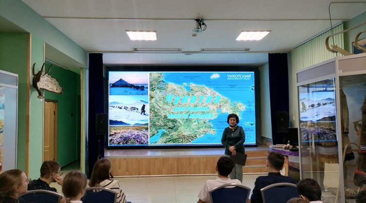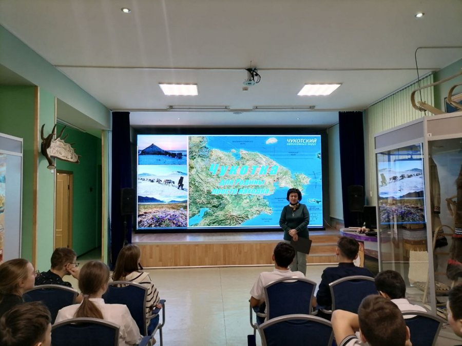 Чукотка, Чукотка, Чукотка Для Родины просто находка. Здесь трудится дружной семьёй Российский народ трудовой, Здесь золото в недрах и уголь, Богатство морей и озёр И тундры простор бархатистый Расписан в цветущий ковёр… (Горюнов Борис) 10 декабря знаменательная дата – Чукотскому автономному округу и Билибинскому муниципальному району исполняется 93 года. В преддверии этой праздничной даты, 8 декабря сотрудники Билибинского краеведческого музея подготовили мероприятие «Чукотка для Родины просто находка…» для учащихся 7-А класса общеобразовательной школы. Ребятам рассказали о богатейшей истории Чукотки, о тех обычных людях, которые своим созидательным трудом вписывают в её летопись новые достижения. О людях разных профессий и национальностей, которых объединяет одно – желание жить и работать на благо своего края. Ребята узнали об образовании и развитии нашего района, начиная с далёких 30-х годов, услышали рассказ об образовании колхозов и национальных сёл, о специалистах района Восточной Тундры, работниках колхозов и молодых учителях. Ну и, конечно, о том, как в начале 40-х годов началось интенсивное развитие промышленного освоения нашего района, о геологических разведках, организации Анюйской экспедиции, о строительстве взлётно-посадочной полосы, о пуске первого блока Билибинской атомной теплоцентрали, первой атомной станции за полярным кругом, которая обеспечила жителей освещением и теплом. Школьникам было рассказано о событии, которое стало новым этапом в истории Чукотки: о выведении региона из состава Магаданской области и преобразовании в Чукотский автономный округ и присвоение нашему посёлку статуса города. Нашей Чукотке и району исполняется 93 года! Всё это стал возможно благодаря людям различных профессий, возраста, увлечений, сделавших наш район и Чукотку прекрасными.