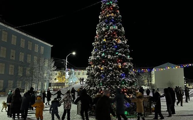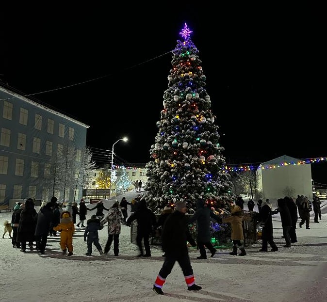 Под новогодние позывные на городской площади у самой главной елки Билибино в ночь с 31 декабря на 1 января состоялся праздничный концерт «С Новым годом!». Жители и гости города стали собираться заранее, катались на горках, пели песни и поздравляли друг друга с наступившим Новым годом. В 01:30 ведущая поприветствовала всех зрителей и пригласила встать в новогодний хоровод, чтобы спеть всем известную и любимую песню «В лесу родилась елочка». И начались поздравления и концертные номера. Песню «Звенит январская вьюга» спела Самира Пидданюк, в исполнении Арины Тарабукиной прозвучала песня «Снежинка», а ей подтанцовывали с огромными снежинками в руках участники народного национального хореографического коллектива «Тиркытир». Громкими аплодисментами зрители приветствовали Снеговика, который предложил билибинцам поводить хоровод вокруг елки под песню «Потолок ледяной». И вместе со Снегурочкой вызвали Дедушку Мороза, который пожелал всем присутствующим добра и счастья, и предложил закрыть глаза и под волшебную мелодию загадать самое заветное желание. С праздником со сцены всех поздравила Виктория Коновалова песней «Новогодняя», ансамбль «Тиркытир» подарил танцевальный номер. На площади от улыбок, поздравлений и счастливых лиц было тепло и радостно. Завершил концертную программу выход символа Нового 2024 года – зеленого Дракона, все присутствующие взялись друг за другом и паровозиком пошли за ним вокруг городской елки. Получился самый длинный в Новогоднюю ночь паровозик из билибинцев. Еще долго слышались по городу строчки из новогодних песен, которые звучали во время концерта, их пели горожане и гости Билибино, когда расходились с площади по домам.
