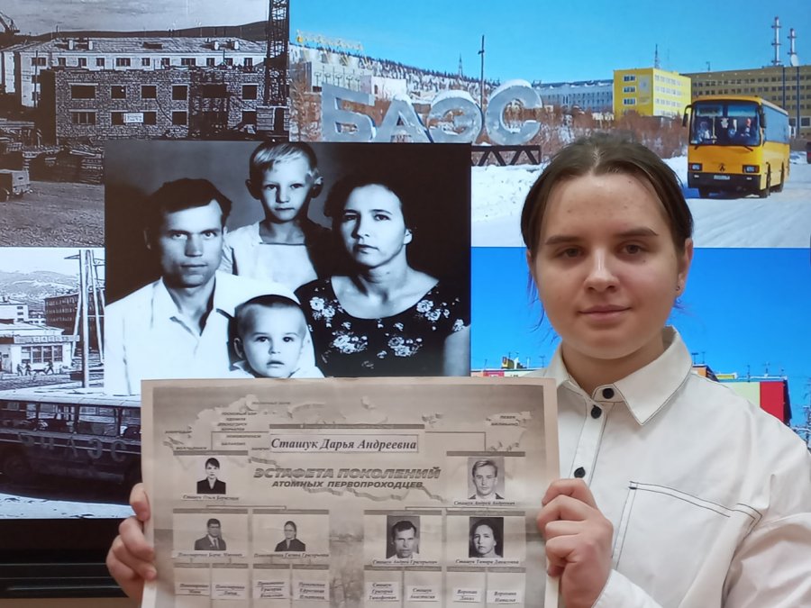 В ноябре 2023 года обучающиеся МАОУ «СОШ г. Билибино ЧАО» приняли участие в конкурсе «Эстафета поколений атомных первопроходцев» – общегородском социально-значимом мероприятии, которое проводили Администрация г. Билибино, ООО «Центр социальных проектов «Белый Дом», при участии Концерна «РосЭнергоАтом», в партнерстве с коммерческими и некоммерческими организациями г. Билибино. Конкурс является приоритетным мероприятием по развитию городских сообществ, способствует формированию патриотизма, а также нравственному и военно-патриотическому воспитанию молодежи, изучающей историю своего города через историю своих семей. Согласно приказу об итогах конкурса «Эстафета поколений атомных первопроходцев» № 56-од от 01.02.2024 УСП Администрации МО Билибинского МР ЧАО победителями и призёрами стали 4 обучающихся нашей школы: Номинация «Мои корни», 12-14 лет 2 место Вуквутагин Д. (наставник – учитель русского языка и литературы Трифонова Л. А.) 3 место Онопченко А. (наставник – учитель русского языка и литературы Бабурян Н. В. Номинация «Эстафета поколений» 15-18 лет 1 место Сташук Д. (наставник – учитель русского языка и литературы Подольцева О. Ю.) 2 место Богдан Д. (наставник – учитель русского языка и литературы Солодина И. Ю.)